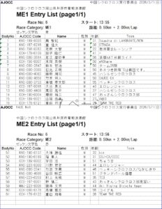 ※26年2月26日改定:ME1、MM1のスタートリストの改訂